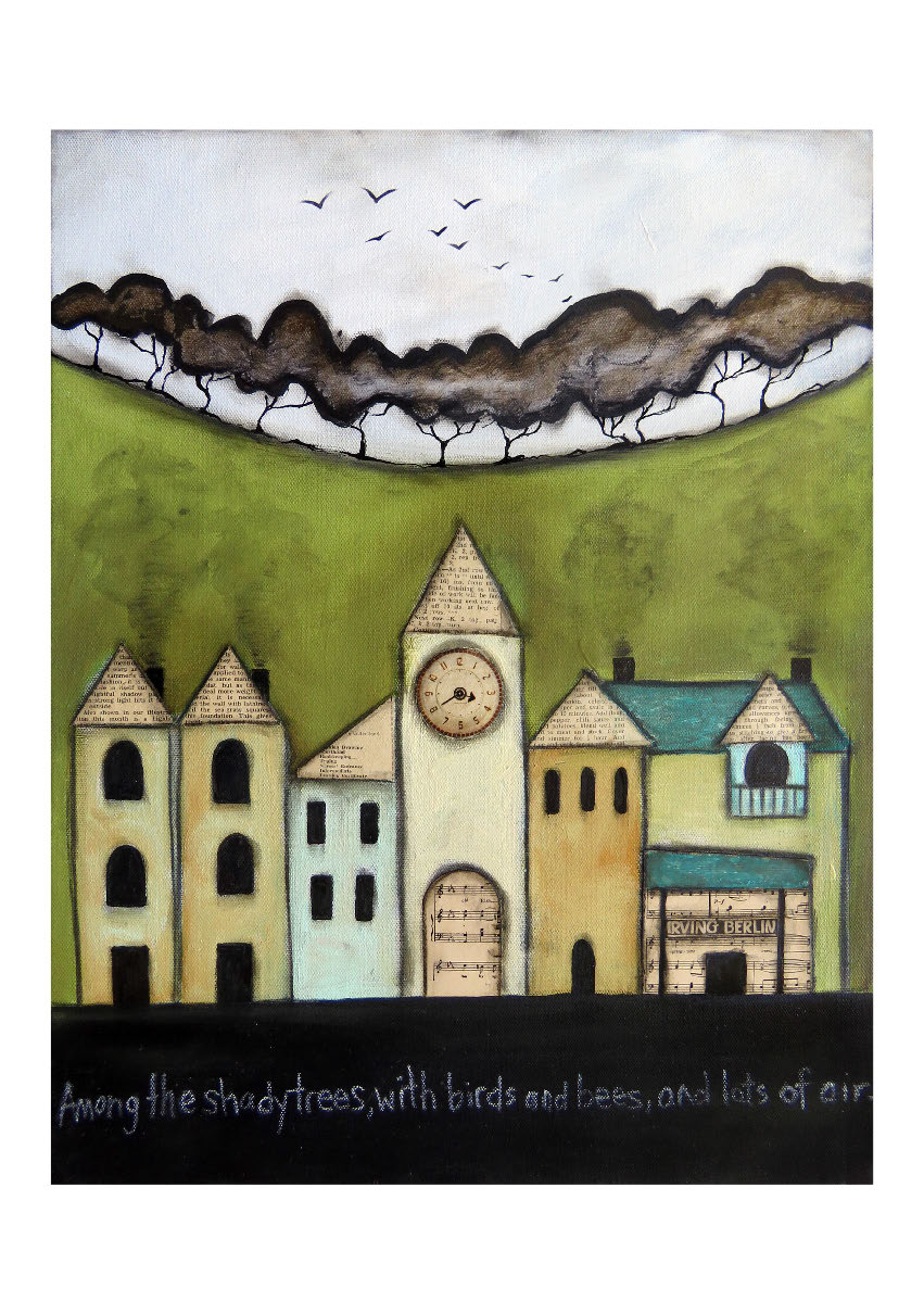 A vintage Irving Berlin music sheet I discovered at the local recycle center was the inspiration behind this piece.   I like to capture a piece of history by adding old papers to my art.